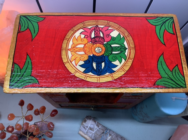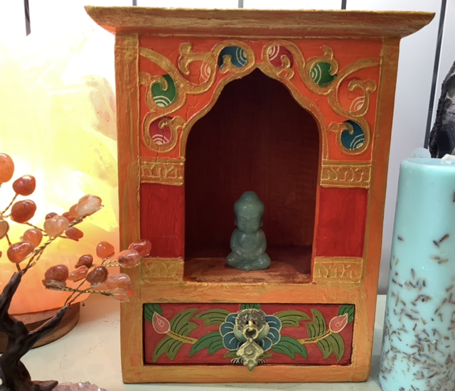 Peint à la main au Népal. L'autel est livré sans la statue de Bouddha.